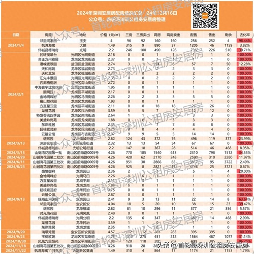 截止到12月16日,深圳今年配售安居房合计2.4万套次(含多个项目重复配售),累计售出3548套,平均去化率15%!