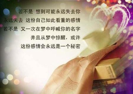 我们在一起的日子虽然很快乐!也有很多甜言蜜语的时刻!有很多的机会我会轻易而举得到你们的肉体!而我却没有那么做,我也清楚你们是那么渴望我能那样做,因为我清楚自己爱的深不深沉!为了我们美好的青春!为了你为了我们的纯洁之身!也是为了我们的相互责任!我不想自己留下任何愧疚!
