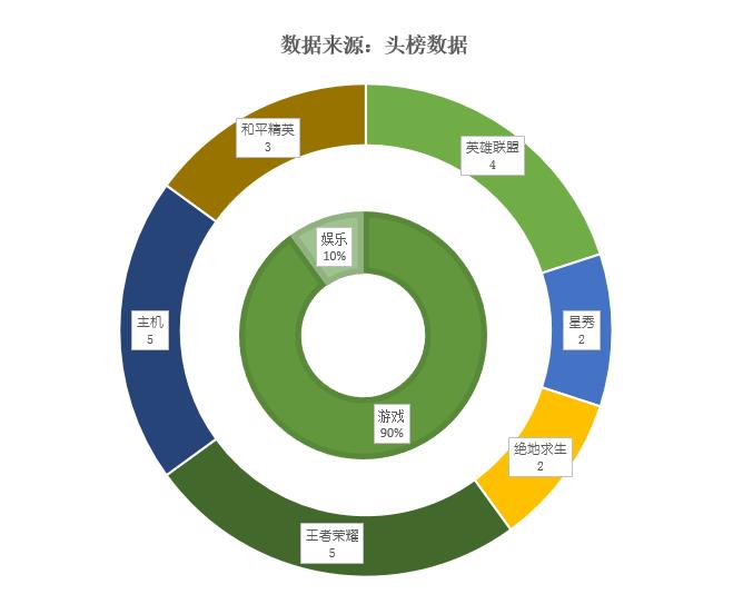本次人气榜TOP10,游戏主播仍然是平台主要流量贡献点,即便追溯到TOP20,娱乐区上榜主播也仅有两位。上榜的18位游戏主播中,王者荣耀与主机区占比最高。