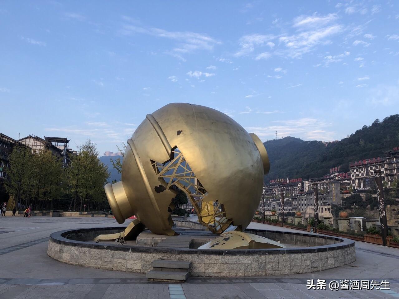 位于贵州茅台镇1915纪念广场的破碎酒坛雕塑