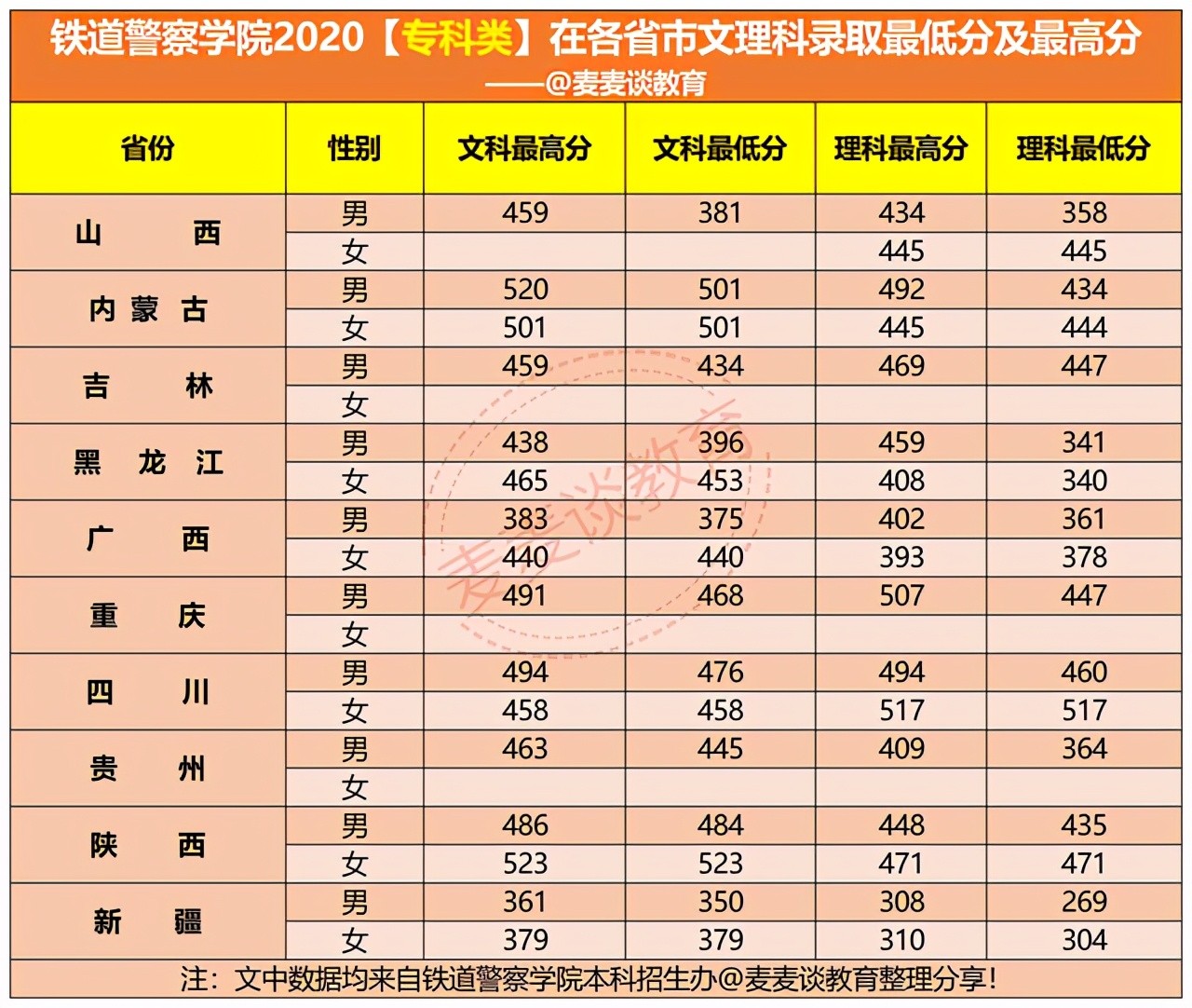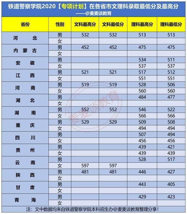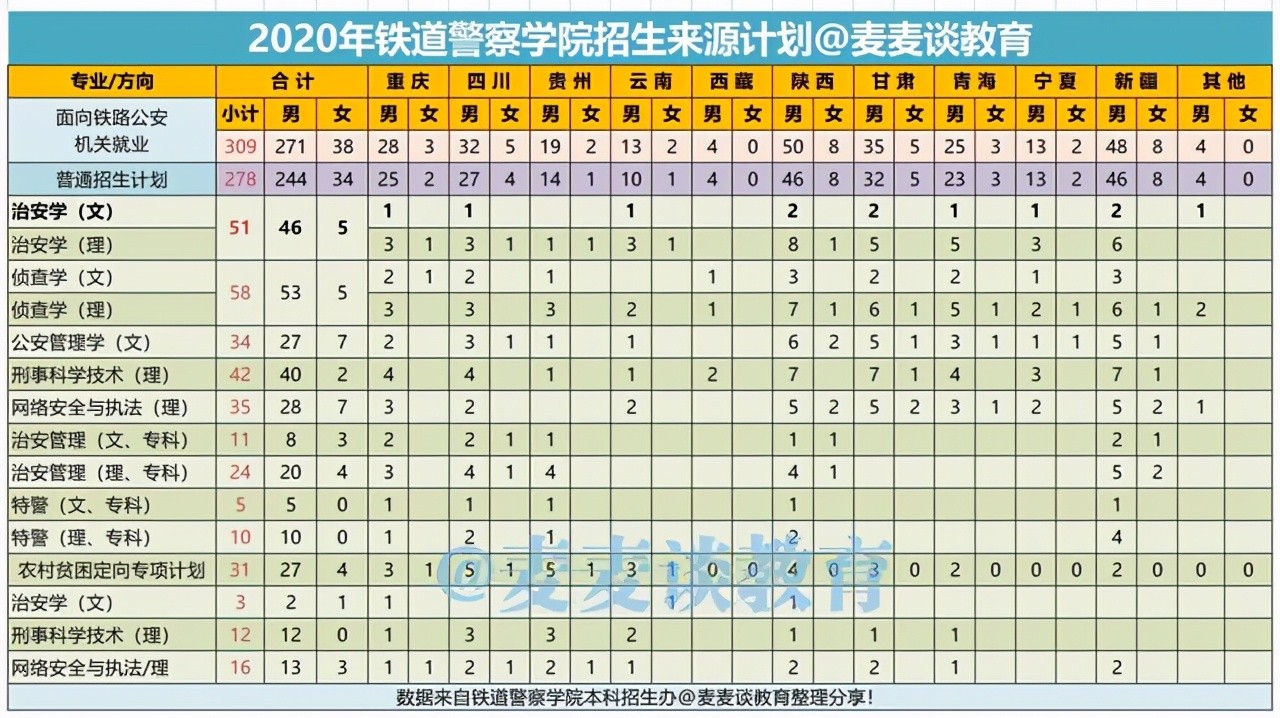 注:文中数据均来自铁道警察学院本科招生办,麦麦整理制表分享。仅供各届高考生填报志愿作参考。如有侵权,请联系删除!本文为原创作品,转自请注明出处!