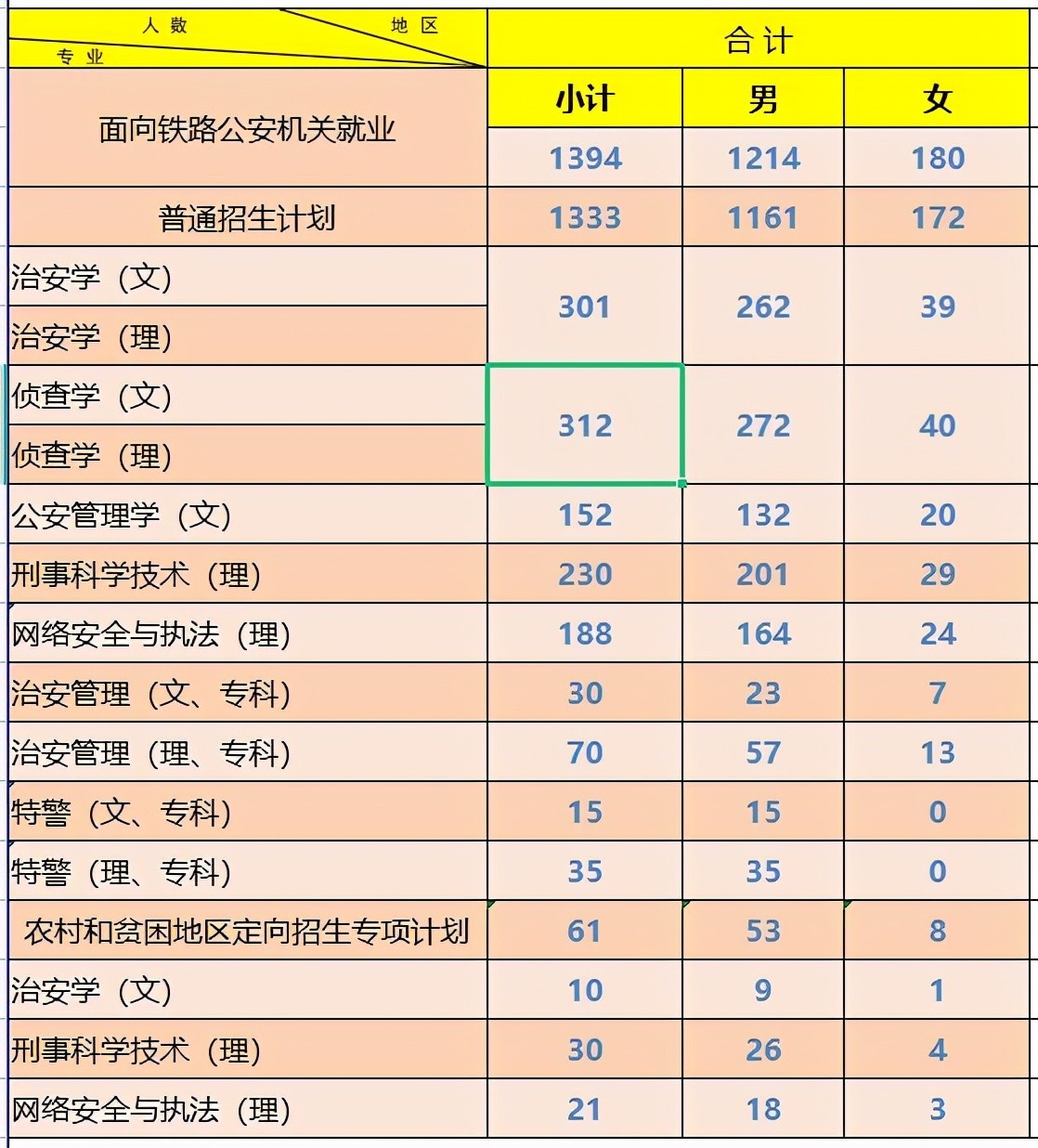 铁道警察学院2020在各招生省市内分专业录取分数线及计划!含专科