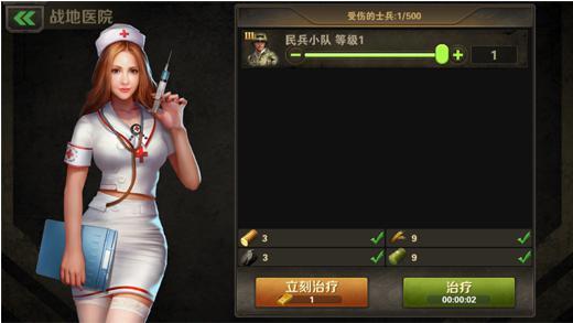 在《世界之战》中,士兵在战斗中会死亡或者受伤,受伤的士兵会进入医院中,在医院中玩家可以消耗资源和时间恢复伤兵,恢复完成之后,伤兵会变成可以战斗的士兵。