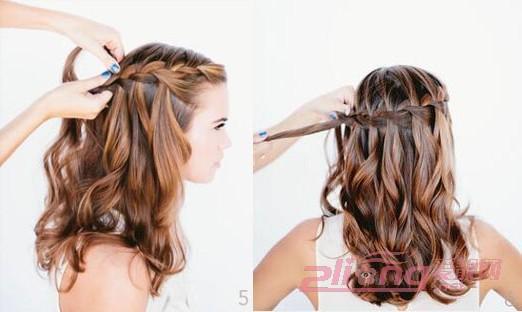 简单瀑布编发教程图解Step5-6》》》》》根据图中的编发方法所示,理好三股发束编发的顺序,采用交叉与压发的方式营造出瀑布的效果。