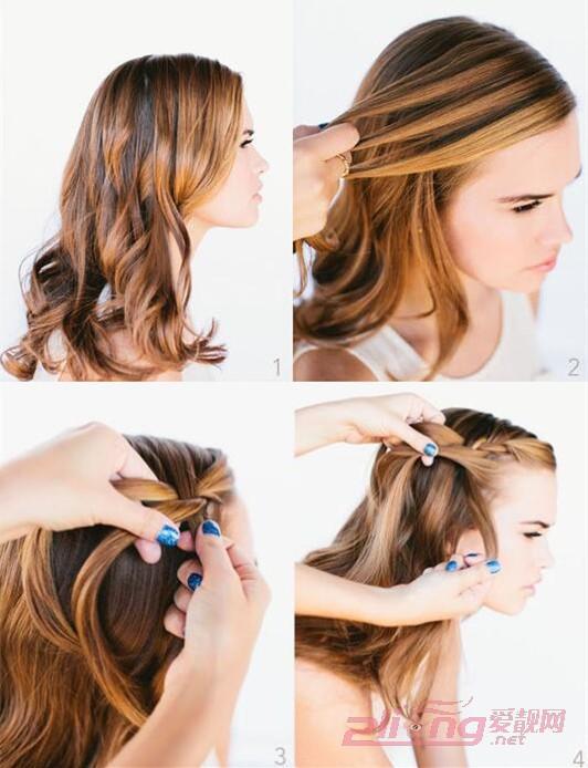 简单瀑布编发教程图解Step3-4》》》》》按照图示编出麻花辫,一直向后脑延伸。