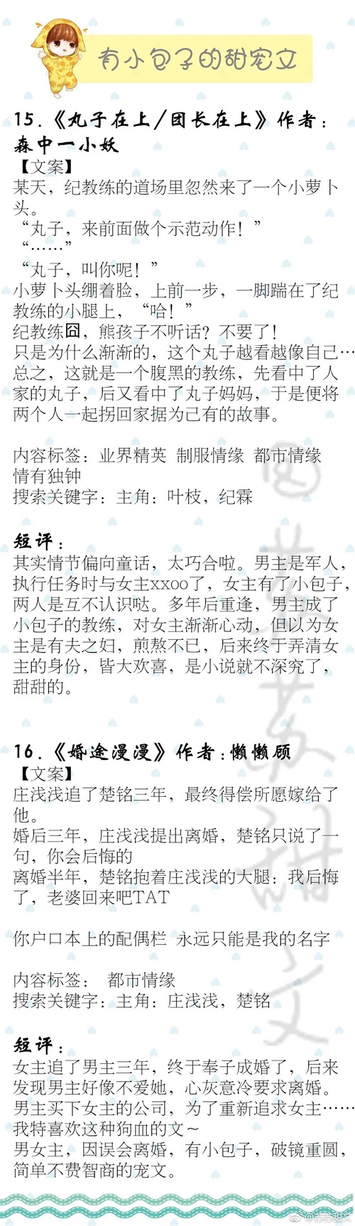 今天推荐十八本带小包子的甜宠文,带着萌萌哒去俘获老婆的心,满满的幸福味道,萌宝助攻日常甜。