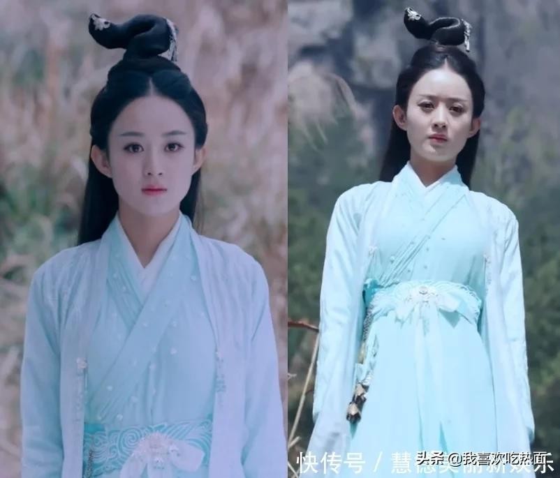 碧瑶在流波山时期穿上了第九套古装,淡淡的青色看着甚为舒心惬意,由波点窄袖打底衫搭配同色系的窄袖外衣,腰带显得很精美。