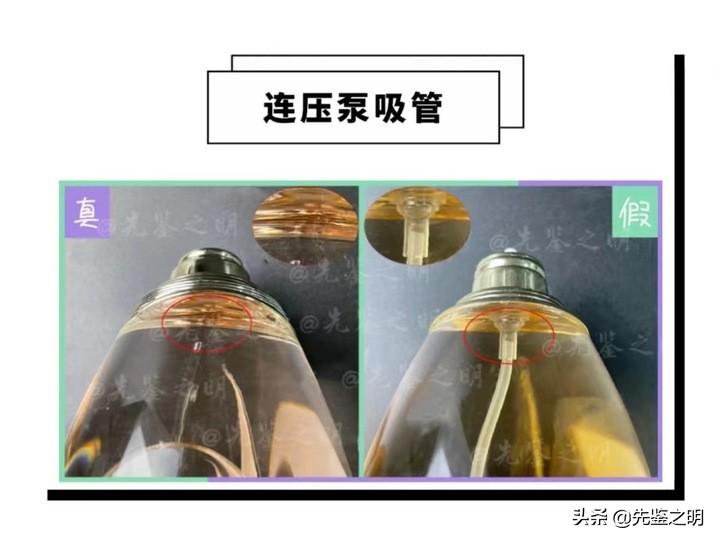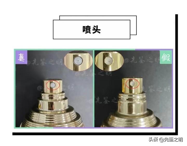 4、正品按压嘴内部构造呈圆形,假货按压嘴内部构造呈不规则的六边形。两者的材质颜色区别也极大,工业废料直接接触香水又直接接触身体皮肤,细思恐极。