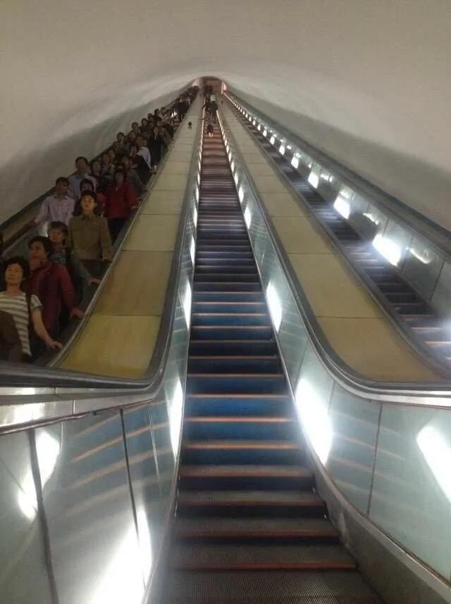 平壤地铁是世界上最深的地铁,据说最深的地方可以达到180米,而北京地铁站的平均深度不过三十米。我想当很多国家都在为世界末日核危机而担忧的时候,平壤地铁绝对是最为安全的人防工事,这也让我们再一次为这座举世闻名的工程而叹为观止。