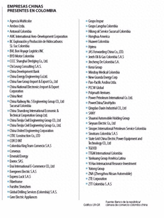 Empresas Chinas presentes en Colombia