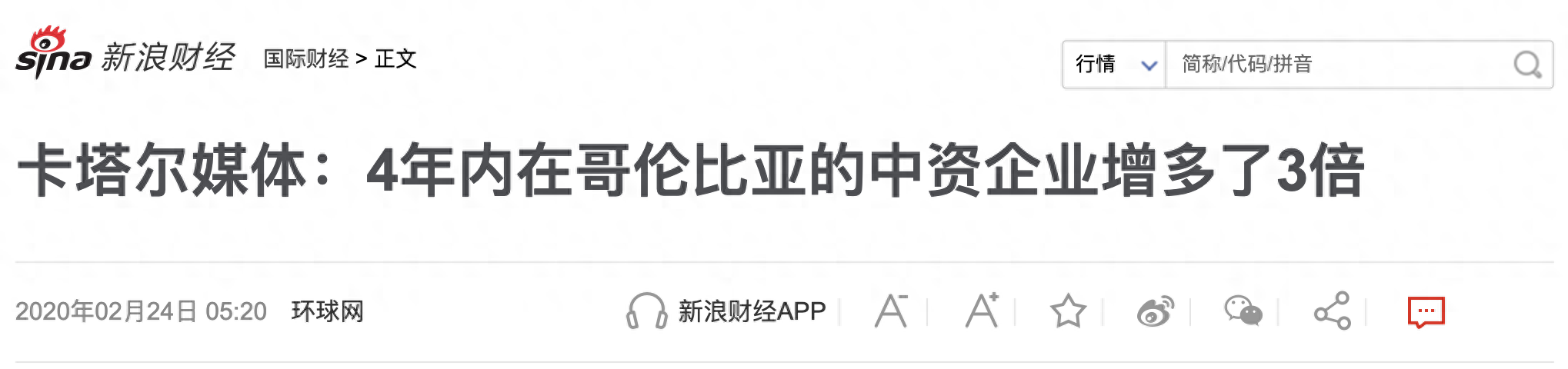 中资企业这几年大举进入哥伦比亚,是对哥伦比亚政治稳定、经济繁荣、治安越来越好的肯定。如果哥伦比亚像侣行描述的那么乱,中资公司会不远万里跑到哥伦比亚投资吗?哥伦比亚不是一带一路的合作伙伴,中资公司在哥伦比亚的投资都是商业性的,没有任何政治目的。
