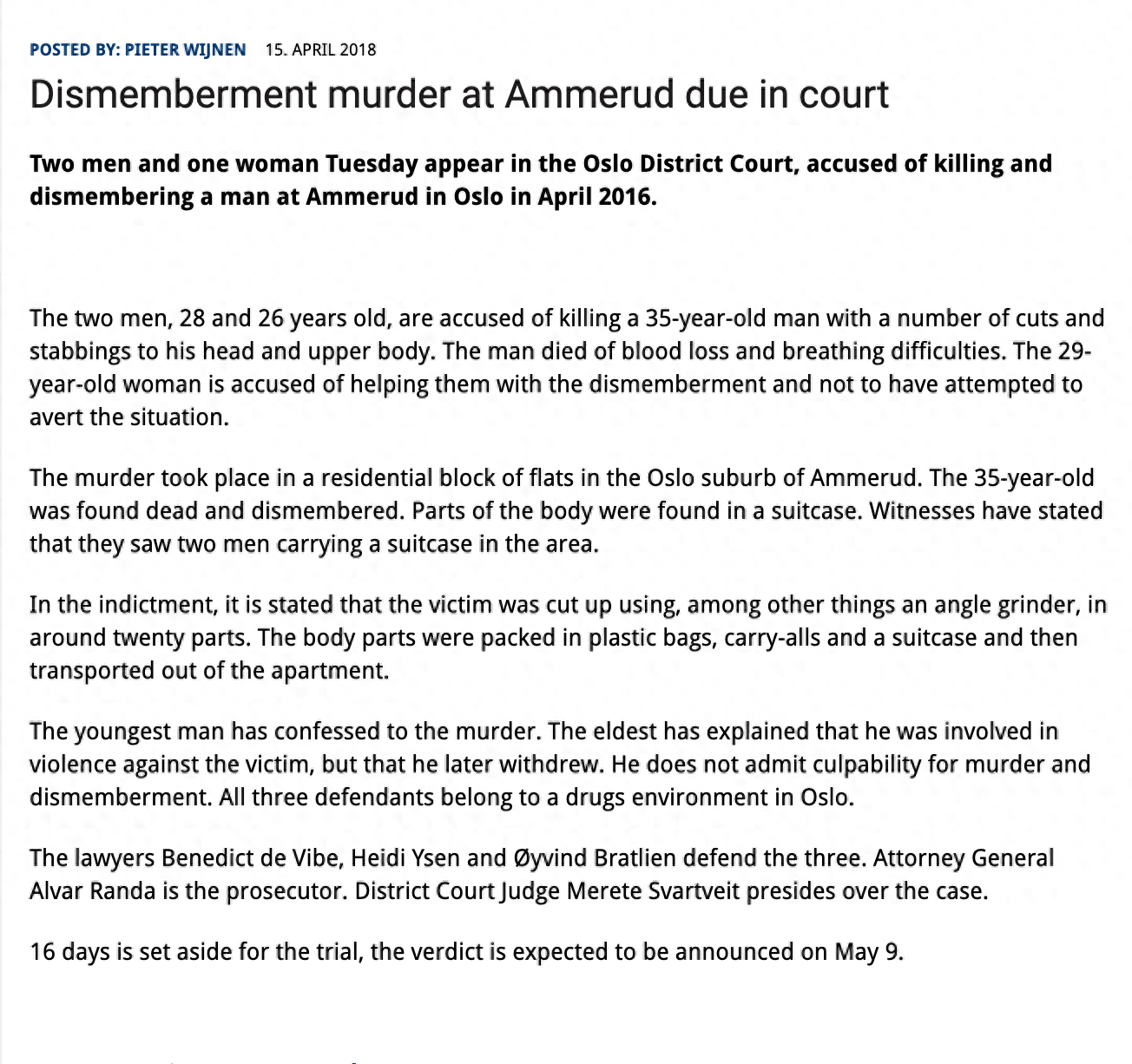 挪威奥斯陆公寓肢解尸体谋杀案