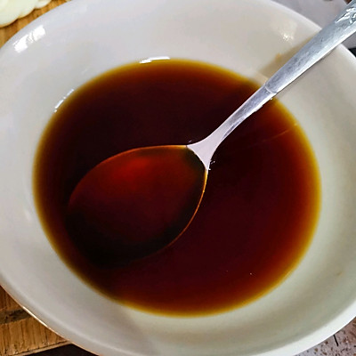 6、腌制同时,可以调制一碗料汁,将生抽,老抽,蚝油,糖,醋混合,放入适量清水(清水的量以需要的汤汁量为准,建议汤汁多留一点比较好吃,我这次清水加的有点少,最后汤汁都收干了)
