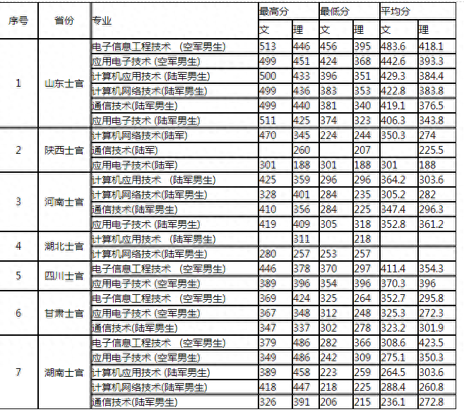 部分省各专业录取分数线供报考参考