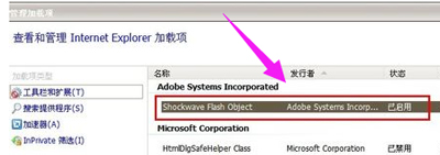 4、点击浏览器右上角的工具。选择管理加载项!!启用shockwave flash 0bject-然后,点击确定。