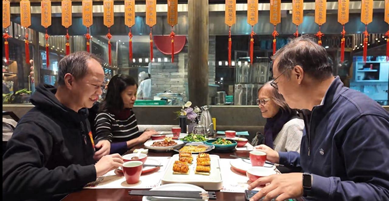 香港游客陈先生带家人朋友到甘坑古镇品尝客家菜。