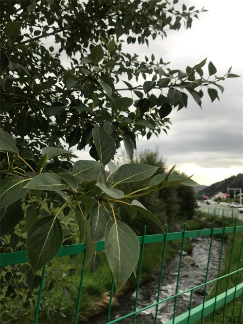 我摘下几片树叶,妻子用搜图软件搜了一下,原来这树叫密叶杨。是杨柳科,杨属乔木。