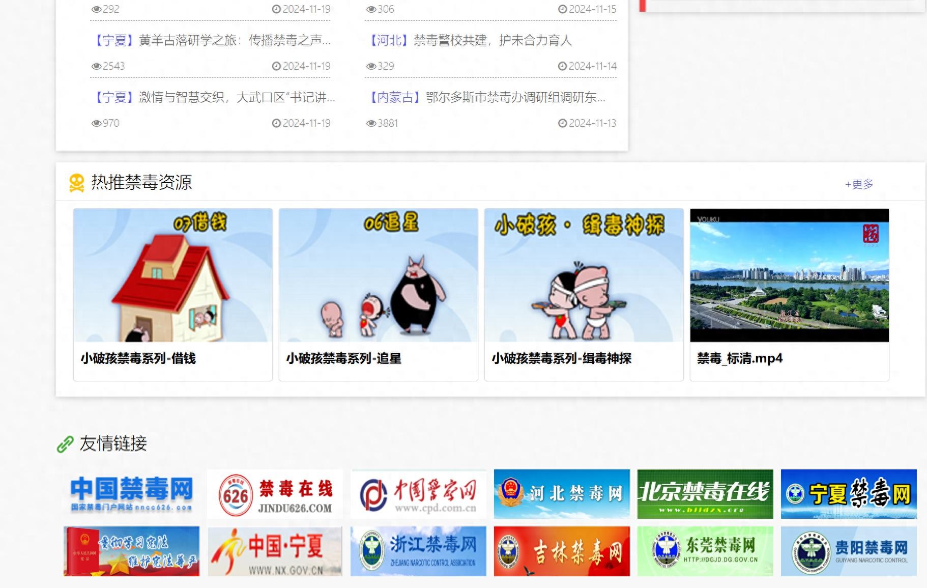 国家禁毒办互联网教育宁夏中心网站主页下方友情链接