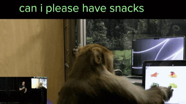 2025 年 4 月,在脑内植入芯片的实验猴子,可以一遍嗦着奶昔,一边用意念打乒乓游戏。