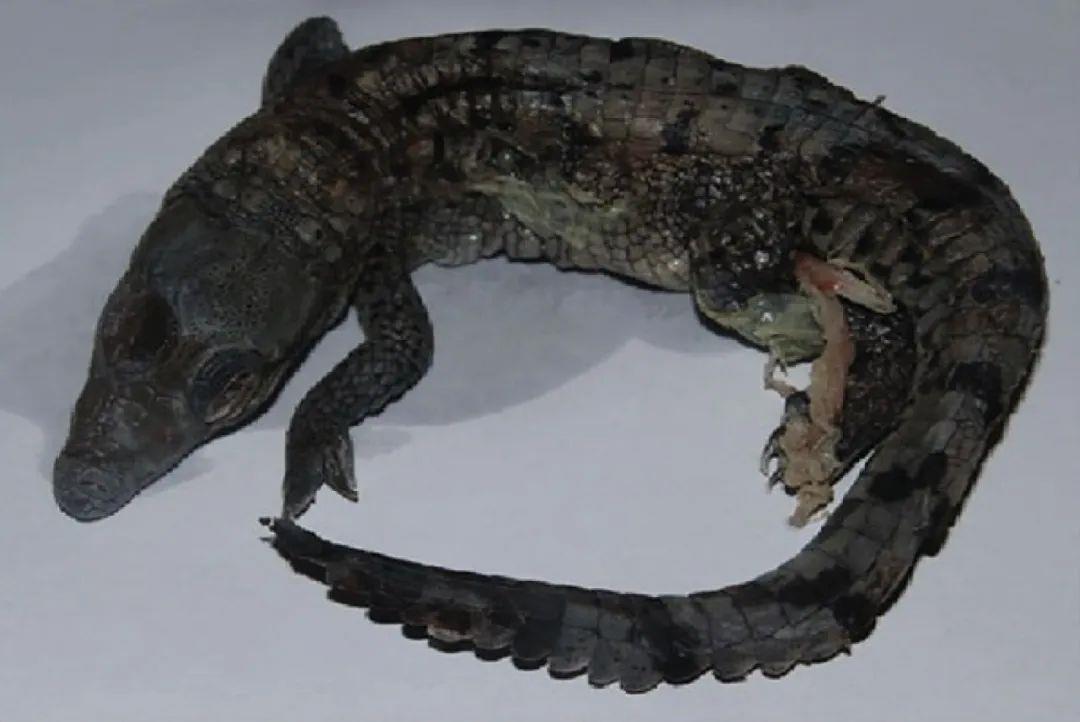 经过三个月的人工孵化,蛋还没有成功孵化,于是研究人员把蛋打开了,在一个蛋里发现了一只完全成形的鳄鱼宝宝。