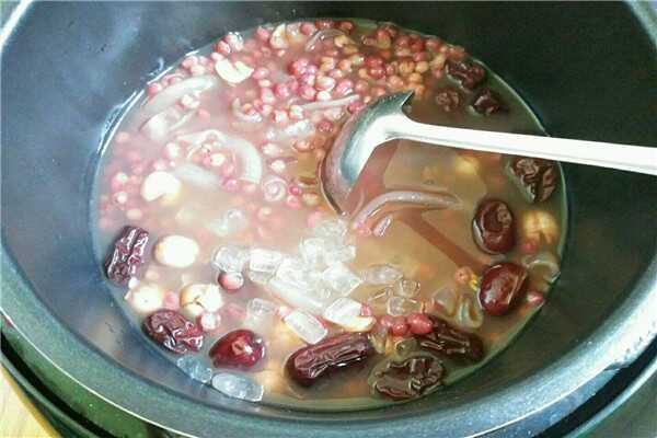 用清水将大米、红豆等淘洗干净,大约三次左右即可。大米淘洗的次数不宜过多,如果清洗次数太多会使大米本身的营养流失掉。再把容器内的大米、红豆、燕麦同时倒入锅中,加入一定量的清水,然后再将清洗好的红枣放入锅中。选择锅上煮饭的功能,再设定好时间,煮饭完成后,就可以喝到美味的红豆红枣粥了。