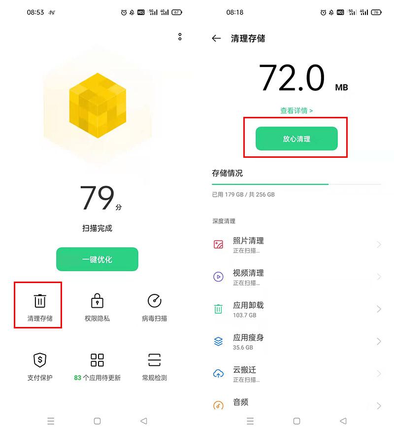 把手机不必要的东西清理掉,让手机轻松上阵,就不容易卡顿啦。