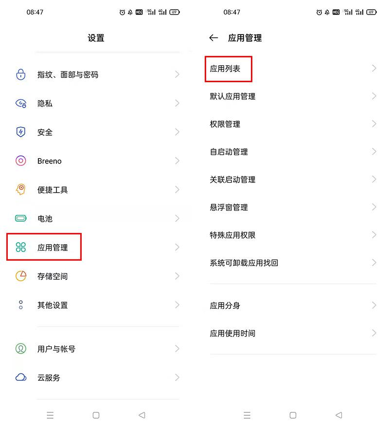 安卓手机:点击【设置】-【应用管理】-【应用列表】。