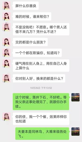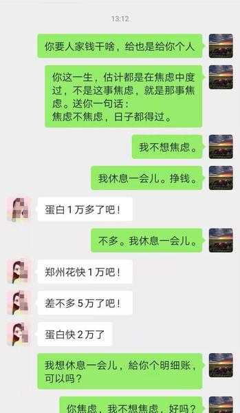在这个时候我需要金钱,精力、精神上,安慰的时候,我媳妇竟然抛出这样的话,做出这样的事情,我跟她说: