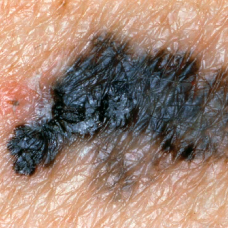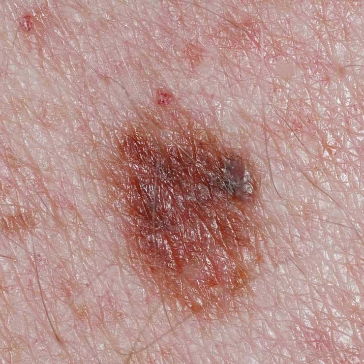 这种痣的形状虽还算对称,但颜色由黑色、褐色、红色和粉色混合而成。Schultz认为,它也有可能是黑色素瘤的信号。