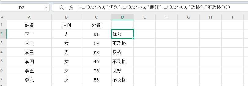 IF函数最令人称道的功能之一,就是其强大的嵌套能力。通过将多个IF函数组合在一起,你可以实现更复杂的条件判断。比如,你想要根据学生的成绩给出不同的评价等级,可以这样写:=IF(C2>=90, "优秀", IF(C2>=75, "良好", IF(C2>=60, "及格", "不及格")))。这个公式首先检查A1是否大于或等于90,如果是,则返回“优秀”;如果不是,则继续检查是否大于或等于75,以此类推,直到找到满足的条件或返回默认值“不及格”。