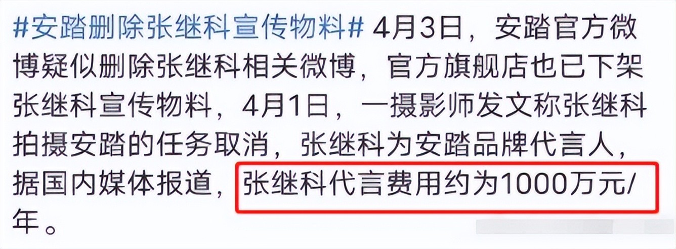 搜索安踏的官方账号,已经找不到关于张继科的相关动态,周一上班就连忙将张继科除名,可见品牌方也很害怕被张继科的黑料牵连,以免造成品牌形象损失。