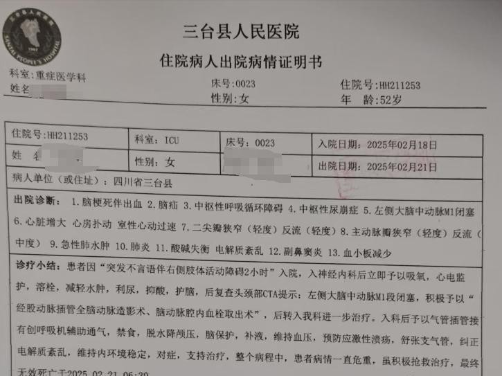 2月18日,四川绵阳三台县的一位52岁妇女在血浆站抽血浆后突然晕倒,被紧急送往医院抢救。经过3天的抢救,这位妇女最终因脑梗去世。家属表示,老人之前一直很健康,没有脑梗病史,怀疑这次脑梗与抽血浆有关。