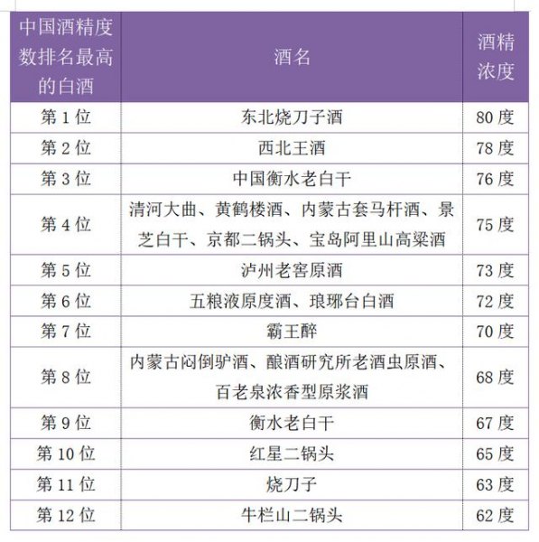 据好酒网整理,中国酒精度数最高的白酒排行榜如下图:
