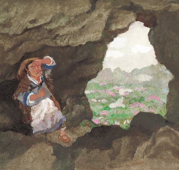 这个故事讲他在深山看见两个仓库,中间隔着水,他过不去,等再过几天去找时,却再也找不到了,和《桃花源记》类似。