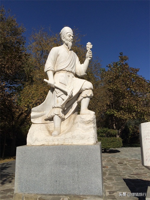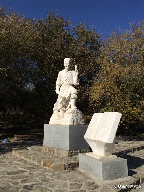 我刚看到这个雕塑的时候,还在想这是谁呢?后来看到旁边的本草纲目刻字,才知道这是神医华佗的雕塑,他手上拿的就是草药,华佗的雕塑出现在植物园里,还是挺符合的,乌鲁木齐植物园确实种植了不少药草。