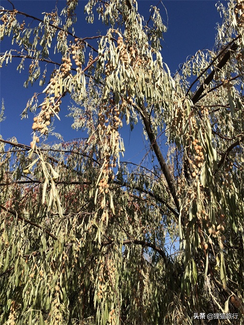 大西北新疆特有的沙枣树你见过吗?这就是沙枣树,可以看到一串串红红的沙枣挂在枝头,沙枣树是干旱地区的卫士,可以防风固沙,在贫瘠的戈壁滩上都可以顽强生长。春天的沙枣花香气四溢,摘一枝沙枣花放在屋子里,满屋都是花香,小蜜蜂采食了沙枣花,可以酿造出高品质的沙枣花蜂蜜,这是新疆甜蜜的礼物。
