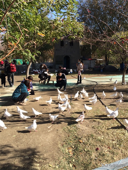 这里圈起来养了好多白鸽,专门给游客体验喂鸽子的地方,有人专门在门口收费。