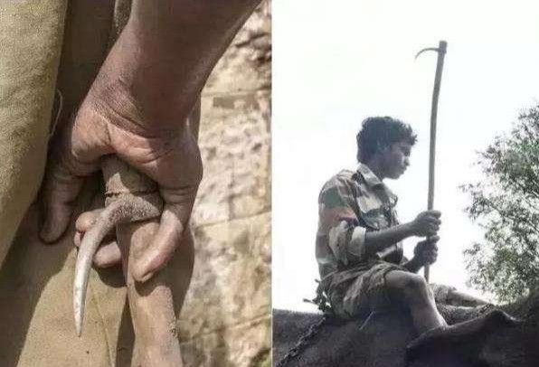 这个象钩每个训象师都有一把,只要大象不听话了,就会手拿象钩,刺进大象敏感的头颈和耳后,流血、结痂、再流血,不断的重复重复再重复,给它们带来了极大的痛苦。然而除了象钩之外,驯象师们还会用各种能让大象感到疼痛和害怕的东西来让大象听话,比如电击棒,斧头等等。