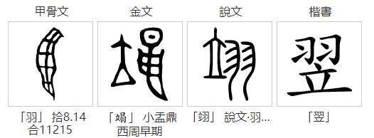 "翌"字最初的字形,上面是一个"羽"字,下面是一个"立"字。《说文解字》认为,"立"表示太阳升起的样子,而"羽"则象征着太阳的光芒。后来,"立"简化为"日",形成了我们现在所见到的"翌"字。