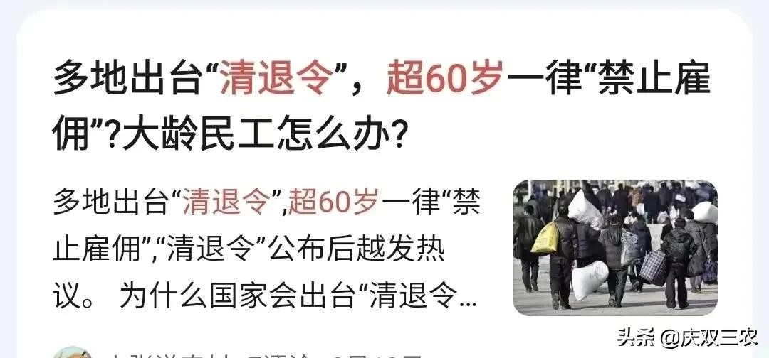 自从上海、天津等地的住建部门出台“清退令”之后,紧接着全国不少的地方也相继出台了“清退令”。“清退令”要求,凡是年龄满60岁的男性,55岁的女性,都不得从事建筑施工行业,不得与施工单位签订劳动合同。于是,在建筑施工单位年龄满60岁的男性,55岁的女性农民工,纷纷被建筑施工单位解除了劳动合同。同时,也引起了不少人的不满。他们认为,自己虽然年龄已满60岁或55岁,但是还可以在建筑工地上干活,怎么说不要就不要了呢?