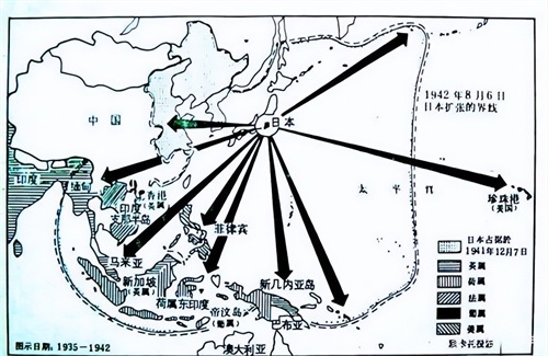 于一九三七年发动了全面侵华战争,在一九三八年的时候提出了大东亚新秩序。日本并不想要东亚这片区域再由英法去制约,而是想要以他们自己为中心。不过那时候的日本还不敢对列强下手,而是在一九四零年八月的时候才真正提出了口号。