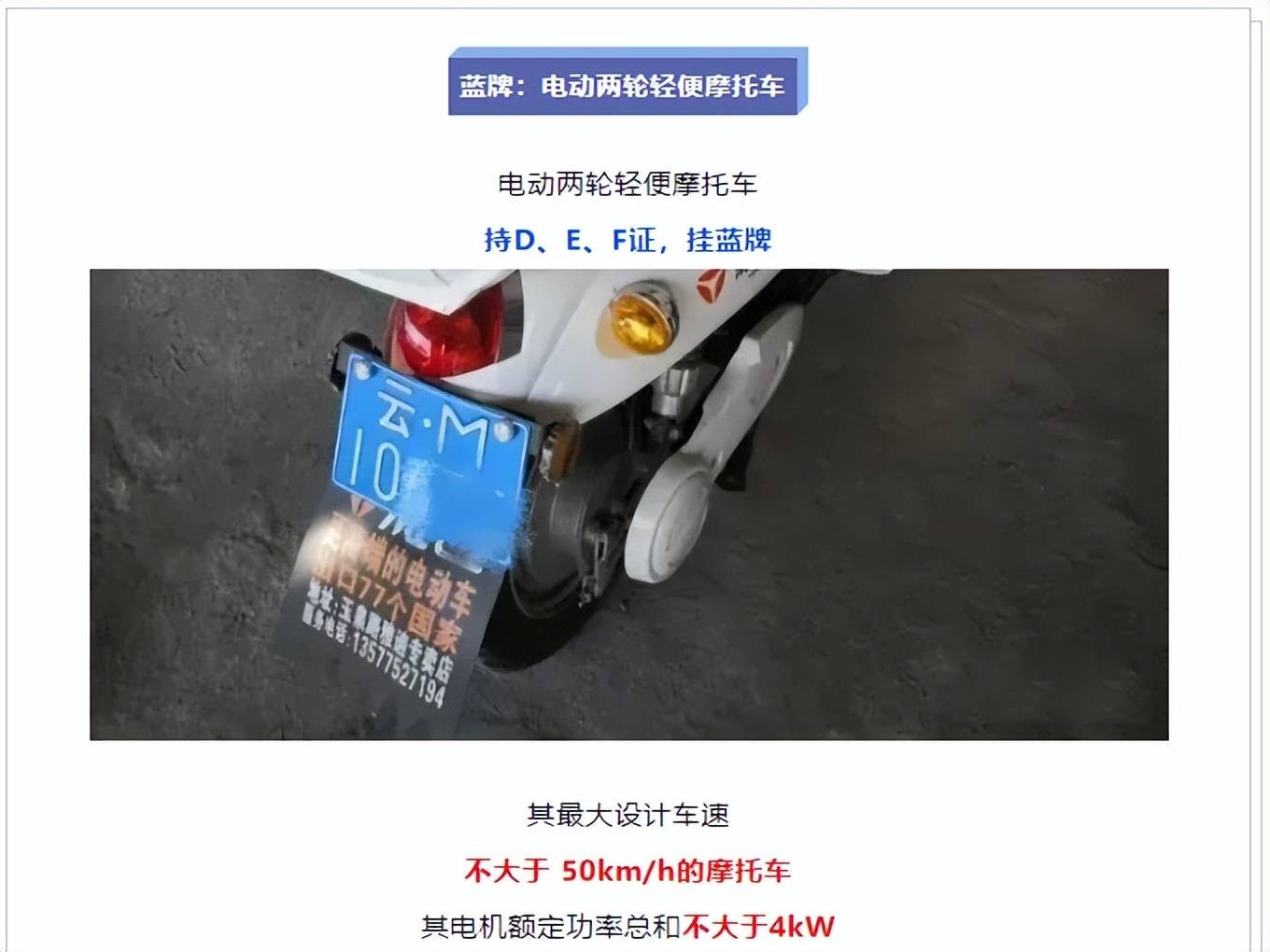 先来说网友分享的上路因为没有驾驶证,被无证驾驶处罚的蓝牌电动车,车主要注意,它的官方名称为“电动两轮轻便摩托车”,在时速方面,它的最大设计车速不大于 50km/h的车型,电机额定功率总和不大于4kW。