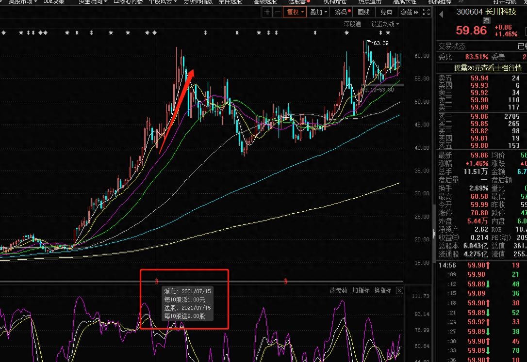 例如长川科技2021年7月15日实施了每10股转增9股并派现金1元的分配方案,该股在7月15日到7月29日累计涨幅44%。