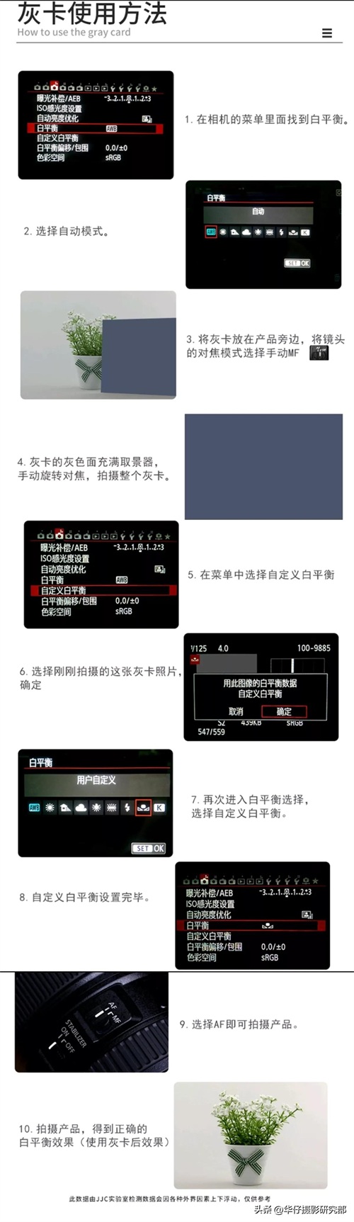 灰卡白卡设置白平衡方法可参考此图(不同型号相机可能会有所不同)