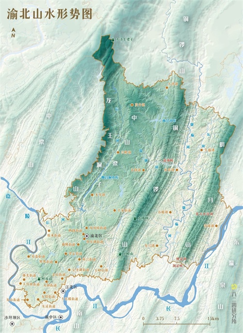 渝北之自然地理格局,可概括为“三山两江带两河”龙王洞、铜锣、明月三山南北展列