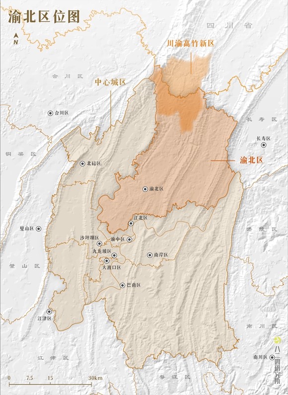 渝北在重庆中心城区的位置