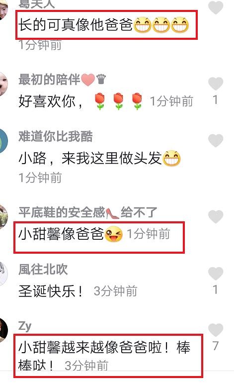 看到这张照片后,网友纷纷评论道“跟爸爸太像了!特别是笑的样子”“跟爸爸一模一样”“甜馨简直是翻版贾乃亮”“长了一张贾乃亮的脸,真像!”“甜馨像极了爸爸”“小甜心越来越像爸爸啦!棒棒哒”。