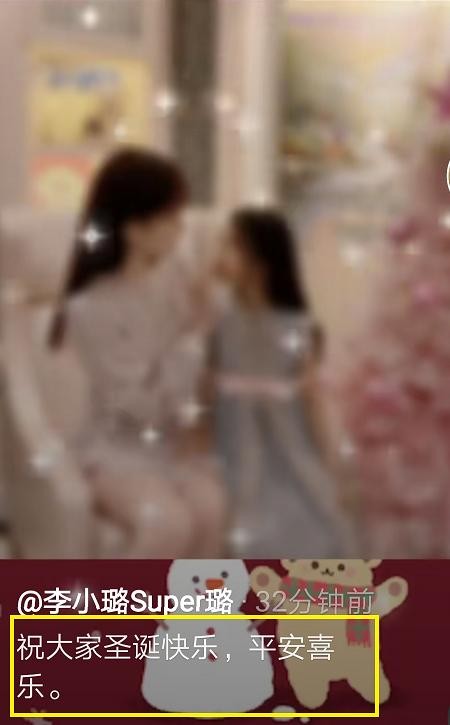 中国小康网 李小璐晒照庆圣诞具体发了什么?12月25日下午,恰逢圣诞节,许多明星在个人社交账号上晒出与圣诞树的照片,还有的明星晒出与孩子共度节日的合照,比如吴尊。而晒娃狂魔李小璐也不例外。