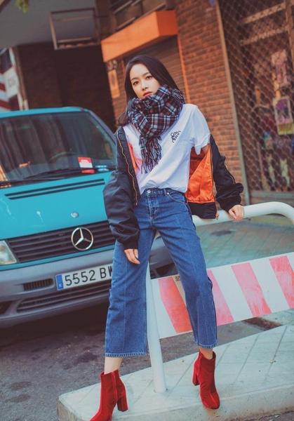 粗跟踝靴是最爱的一款,实在是百搭好看,搭配牛仔裤比例修长,身段潇洒。宋茜的这款简直太好看,丝绒面料,红色搭配蓝色牛仔裤,除了好看高级,找不到其他的形容词了。