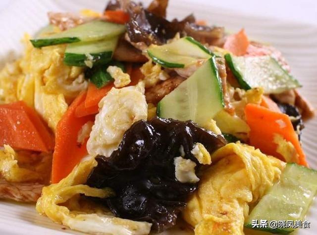 主要食材:里脊肉,鸡蛋干,木耳,干黄花菜,黄瓜。